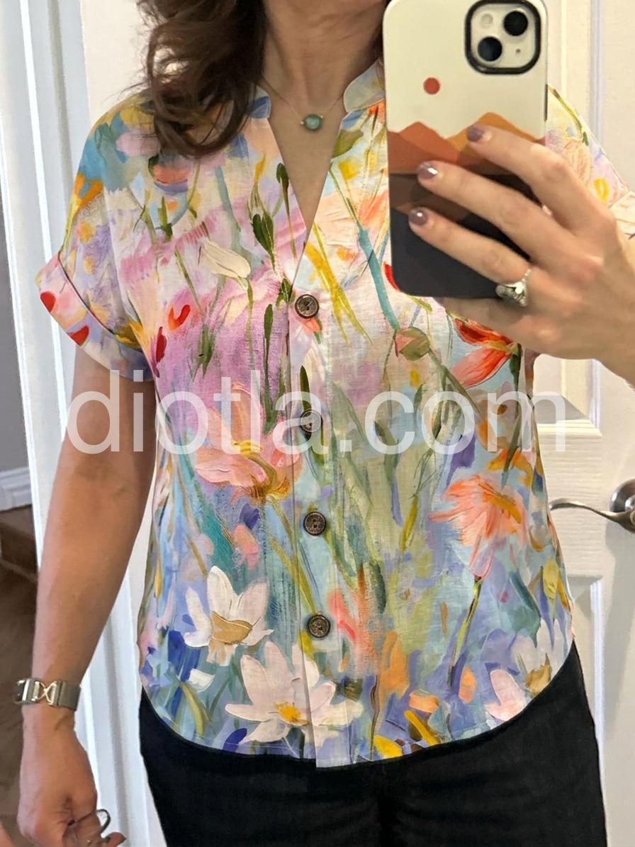 Yes!It runs true to the garment size chart please choose your size based on your measurements.Elevate your seasonal wardrobe with this Chic Watercolor Floral Print Short Sleeve Top, a dreamy and artistic top that captures the essence of blooming spring. Crafted from lightweight, breathable fabric—likely cotton or rayon blend—this short-sleeve blouse features a delicate watercolor-inspired print in soft pastel hues of blush pink, lavender, peach, and sky blue, accented with hints of green and gold. The floral design flows across the fabric like a painted garden, creating a romantic and effortless look. A classic V-neckline and front button closure add structure and versatility, while the relaxed fit ensures comfort and ease. Perfectly paired with jeans, high-waisted shorts, or flowy pants, it’s ideal for casual outings, weekend brunches, or warm-weather strolls. Styled here with layered necklaces and a sleek watch, it blends boho charm with modern simplicity. Let this floral blouse bring a touch of gentle elegance and vibrant color to your everyday style.
